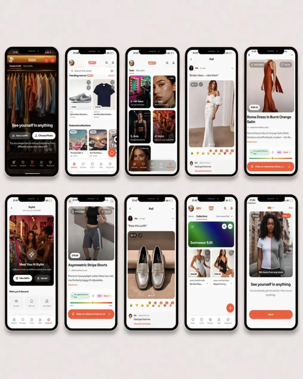 WNTD describes the app as a decision engine spanning the fashion ecosystem. In practice, that means users can collect images and product ideas from different places, build looks around them, and compare options before completing a purchase on a retailer's site.